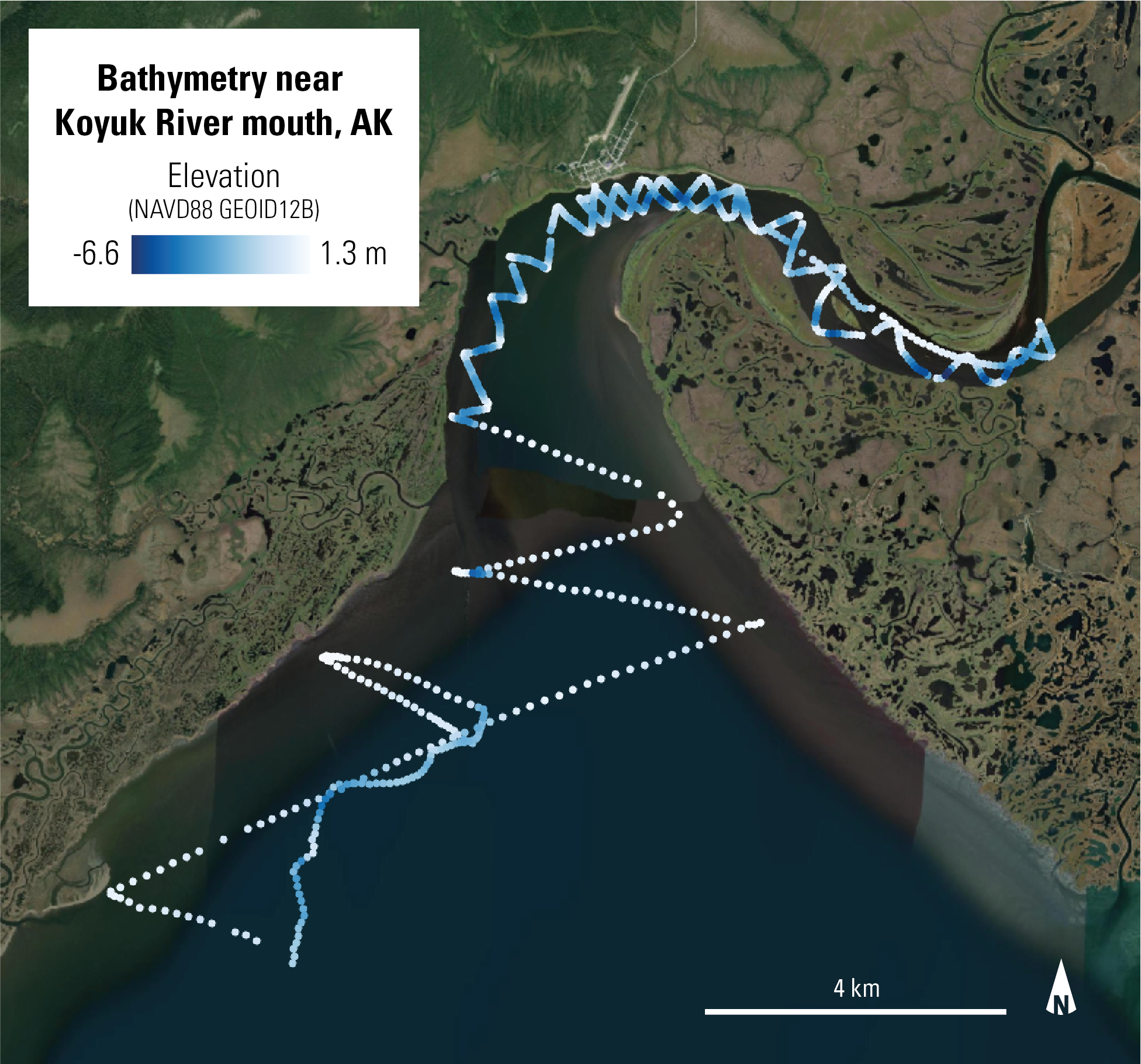 This dataset contains nearshore bathymetry measurements collected at the mouth of the Koyuk River in Alaska. The data were collected in June 2024 and subsequently processed by the U.S. Geological Survey, Pacific Coastal and Marine Science Center. Results are provided in a comma-separated value format (csv).