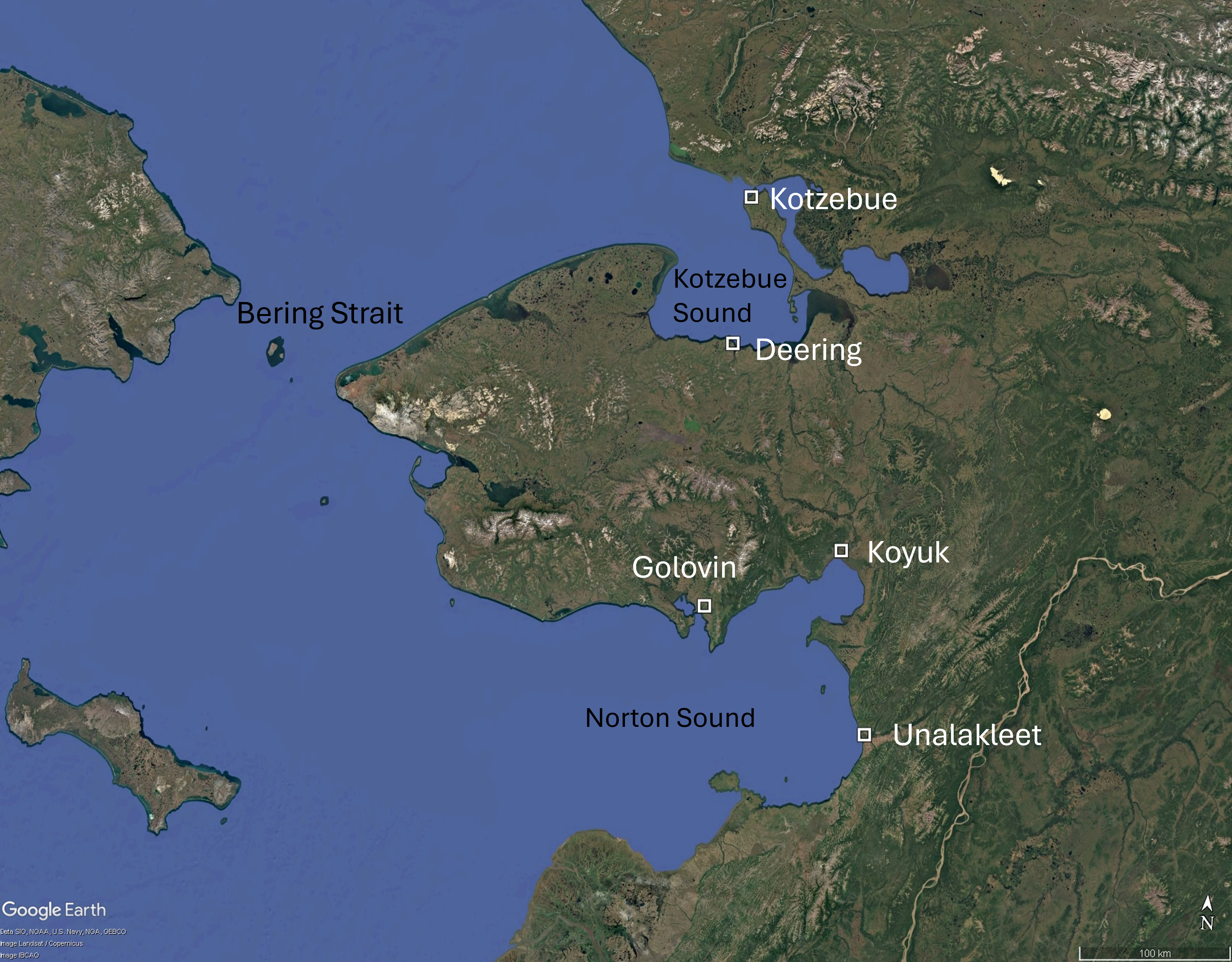 Elevation point data were collected in Deering, Golovin, Koyuk, Kotzebue, and Unalakleet, Alaska between June and September 2024. Coastal elevation profiles were measured at previously established locations. Other data points are categorized as base station, bathymetry, benchmark, camera calibration data, community-based monitoring profile, drainage observation, flood staff, ground control point, miscellaneous, and water level. The elevation data were collected with real-time kinematic global navigation satellite system (RTK-GNSS) equipment. Data are available in a single CSV file per community. For easting and northing coordinates, Deering, Golovin, and Kotzebue use UTM 3. Unalakleet and Koyuk use UTM 4.
