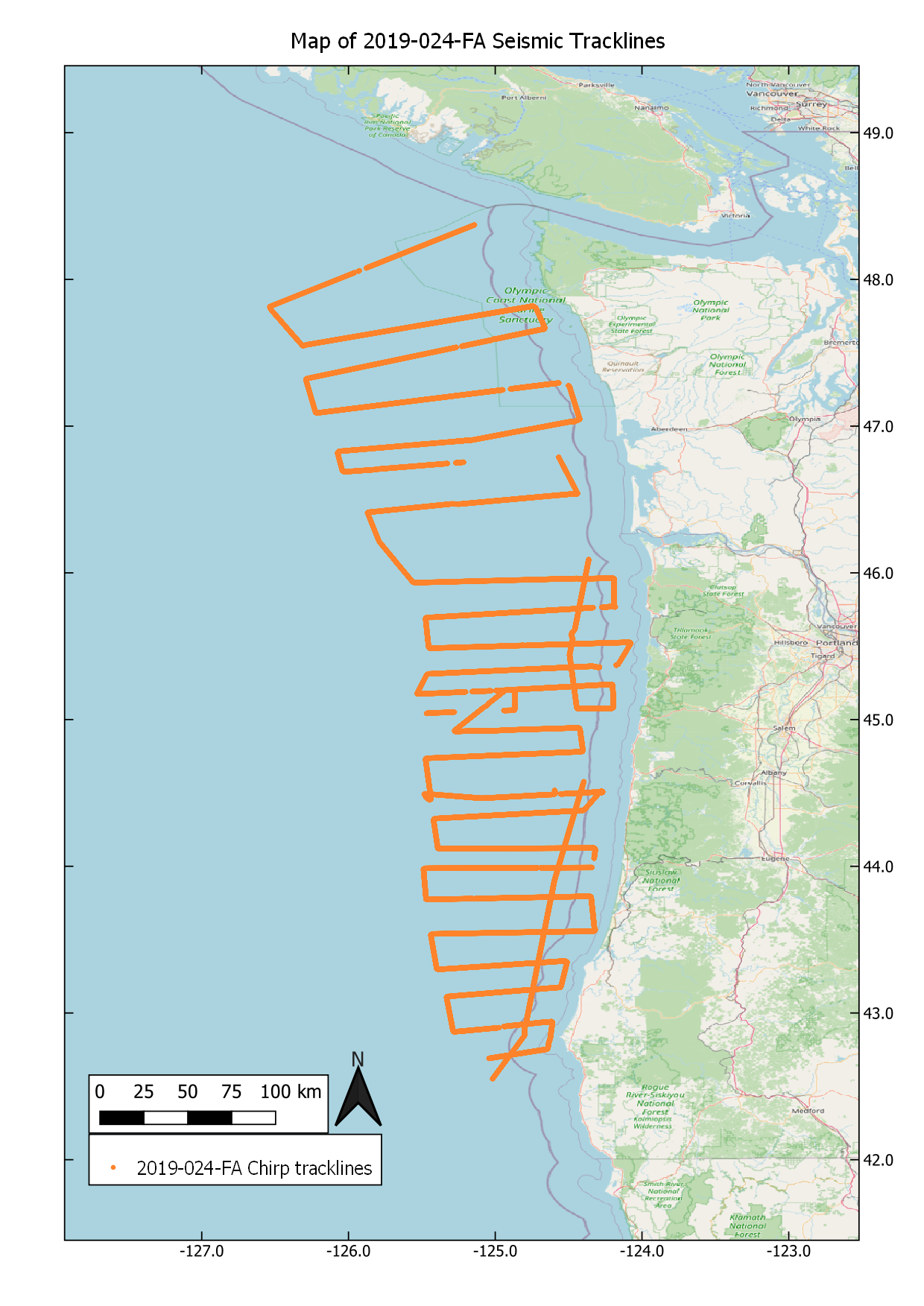 Balster-Gee, A.F., Miller, N.C., Watt, J.T., Roland, E.C., Kluesner, J.W., Heller, S. J., Hart, P.E., Sliter, R.W., Myers, E.K., Wyland, R.M., Marcuson, R.K., Johnson, C.D., Nichols, A.R., Pszczola, K., Williams, C., 2023, High-resolution multichannel sparker seismic-reflection and chirp sub-bottom data acquired along the Cascadia margin during USGS field activity 2019-024-FA: U.S. Geological Survey data release, https://doi.org/10.5066/P96ZBXK8.