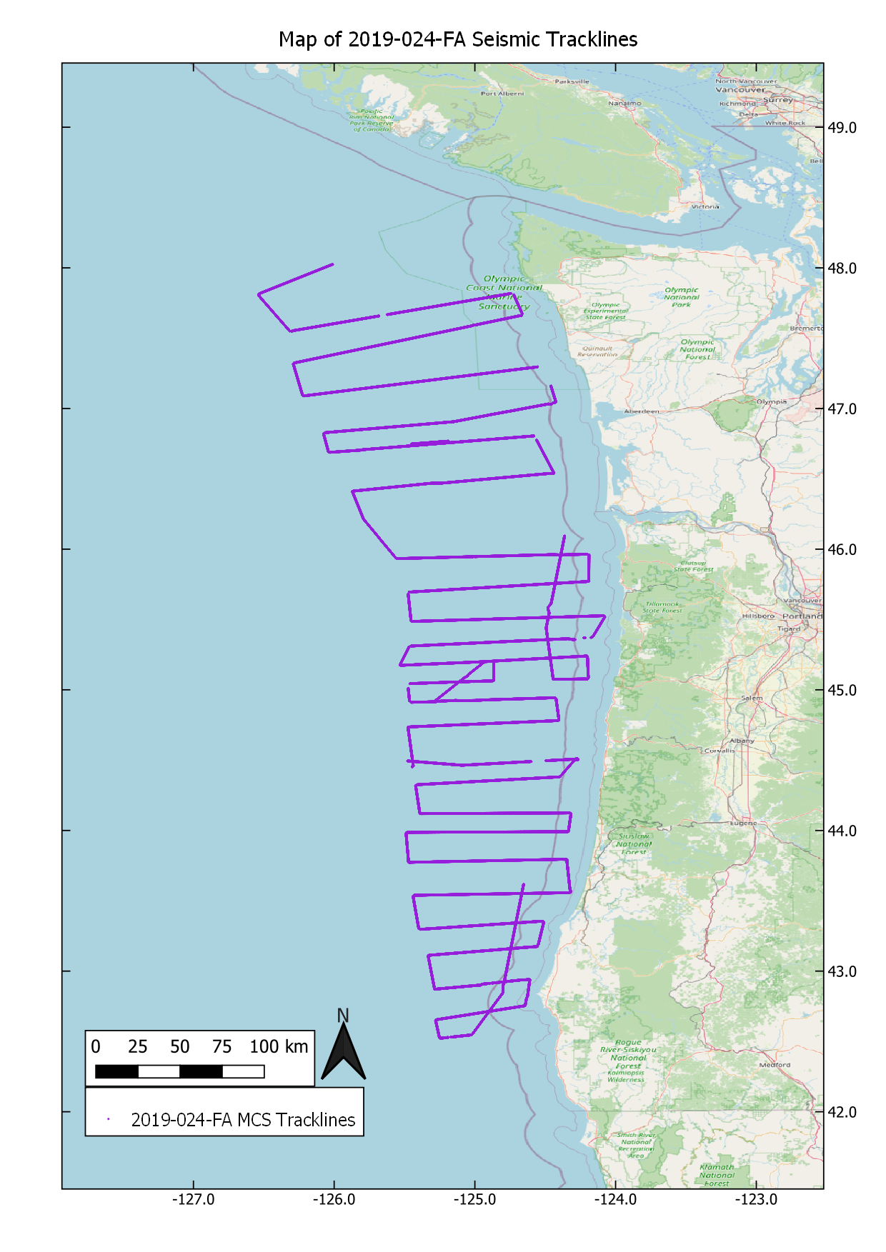 High-resolution multichannel sparker seismic (MCS) data were collected by the U.S. Geological Survey in collaboration with the University of Washington (UW) in the summer of 2019 along the Cascadia submarine forearc offshore Oregon and Washington.